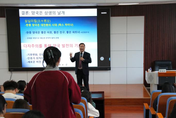 区域国别学院举办“了解中国和韩国文化”专题讲座——韩中交流促进委员会委员长李昌虎教授应邀主讲