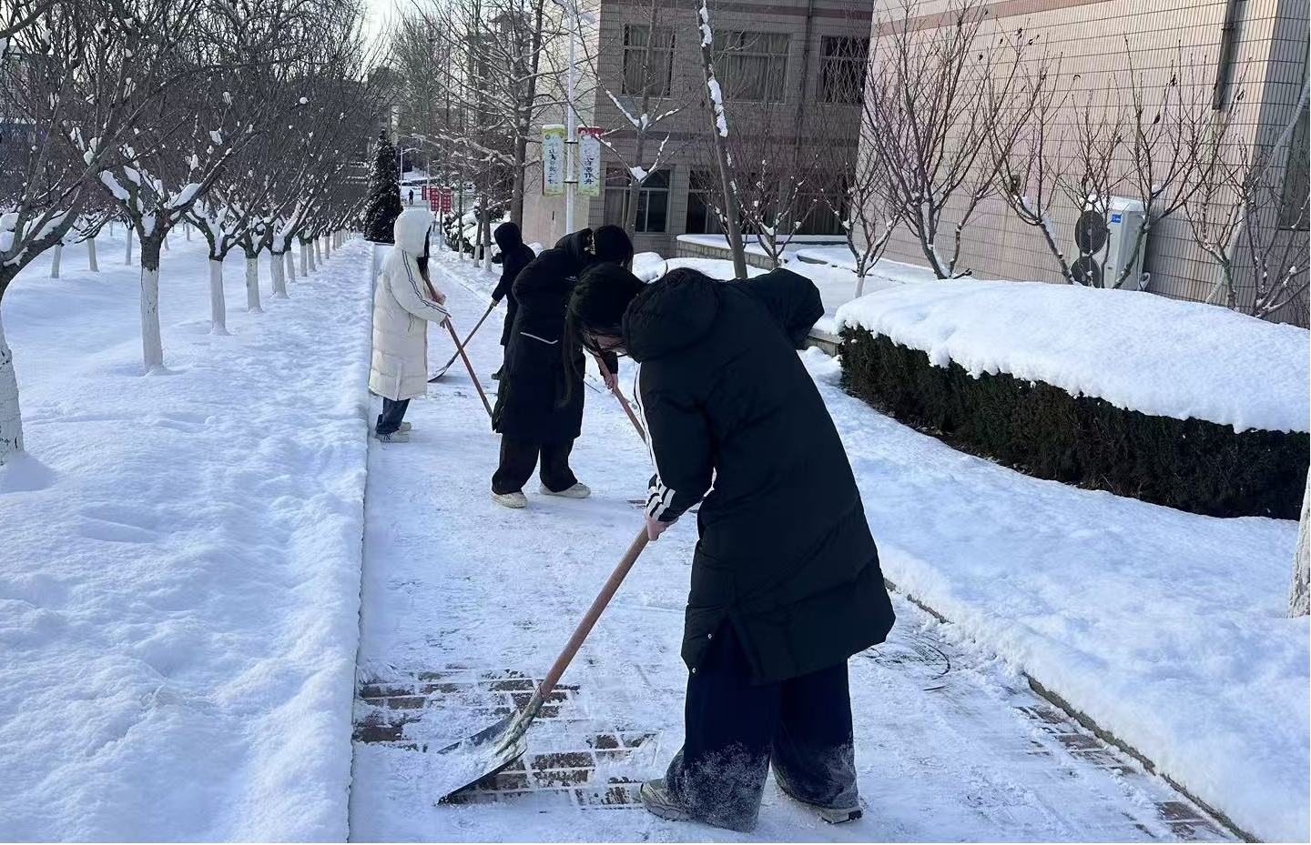 此次扫雪行动是区域国别学院“党建引领聚合力,志愿服务践初心”的具体实践。下一步,区域国别学院将持续深化“党建+志愿服务”模式,聚焦师生急难愁盼问题,推出更多务实举措,让党旗在服务师生一线高高飘扬,以实际行动践行育人初心与使命。(区域国别学院 撰稿:代文娟 初审:林昱辰 复审:褚少尉 终审:姜峰)