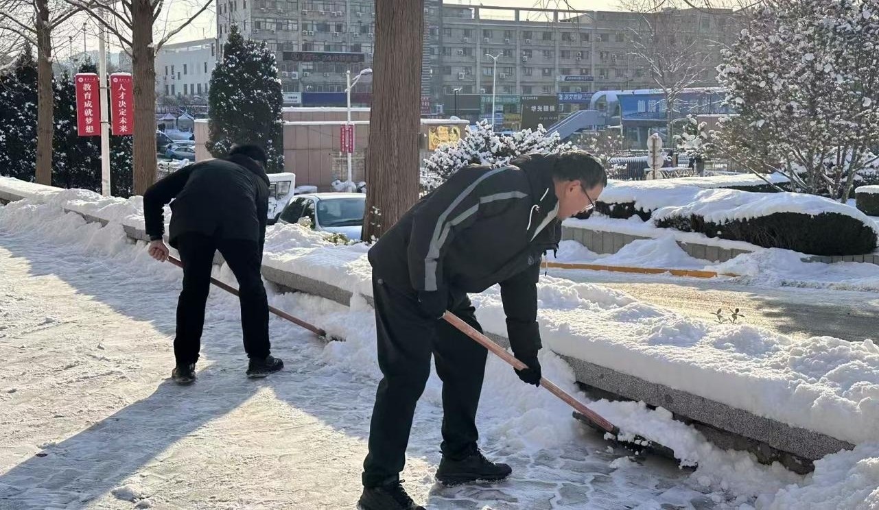 1月20至21日,烟台市遭遇降雪天气,校园内积雪深厚,部分路段形成薄冰,给师生出行带来极大安全隐患。为保障校园道路通行顺畅、守护师生出行安全,区域国别学院班子成员率先垂范,带领全院师生迅速开展扫雪护行工作。