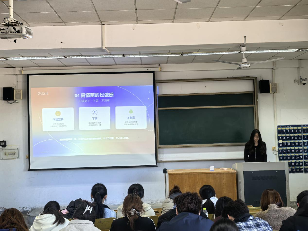 培训阶段,本科生学生会主席王丹丹以社交好感力进行分享,从沟通表达细节、真诚待人举止、圈层相处之道、保持从容心态四个方面,传授实用高效的社交技巧,引导同学以真诚为基、以同频为要,构建和谐融洽的人际关系。本科生学生会主席董菡临围绕公众表达技巧开展专题分享,从认知定位、前期准备、现场应对、表达技巧四个维度,指导学员突破表达瓶颈。培训结合乔布斯产品发布会、马丁・路德・金经典演讲等案例,讲解结构搭建、情感传递、语言运用等表达要点;针对忘词、紧张、现场被打断等常见问题分享应对策略,鼓励同学们在实践练习中增强自信、提升水平。