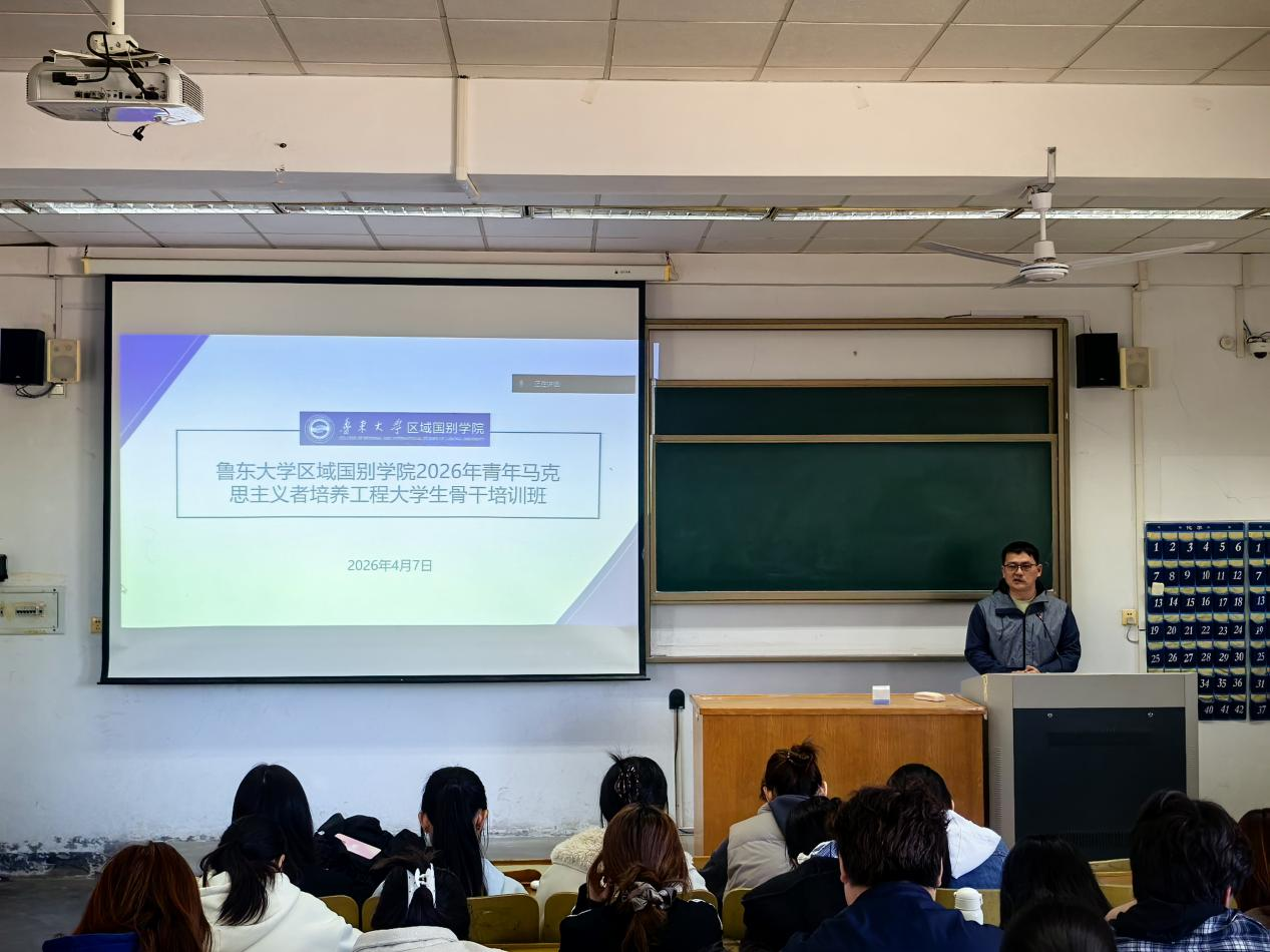 为深入学习贯彻习近平新时代中国特色社会主义思想和党的二十大、二十届历次全会和2026年全国两会精神,全面落实习近平总书记关于青年工作的重要思想,扎实推进学校“青年马克思主义者培养工程”落地见效,切实破解学生干部队伍建设中的现实困境,着力提升学生干部履职能力与综合素养,4月7日,区域国别学院在北区9号教学楼举办2026年“青马工程”大学生骨干培训班第二课。学院团委书记褚少尉出席并讲话,全体参训学员参加培训。